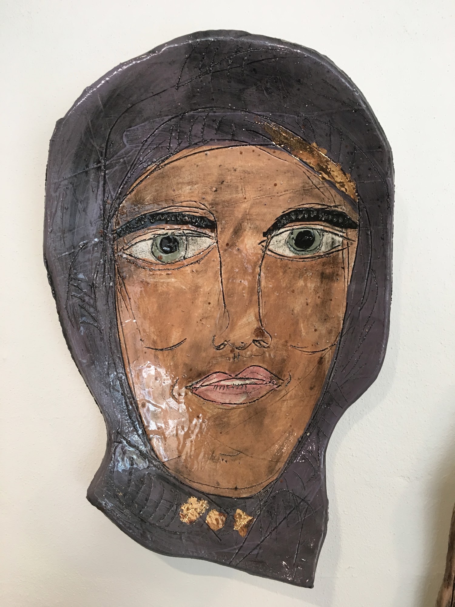 På venteværelsets store bagvæg, ser du udstillingen "Plads til alle" som består af 20 fine keramikfigurer lavet at Helene Stiegel.